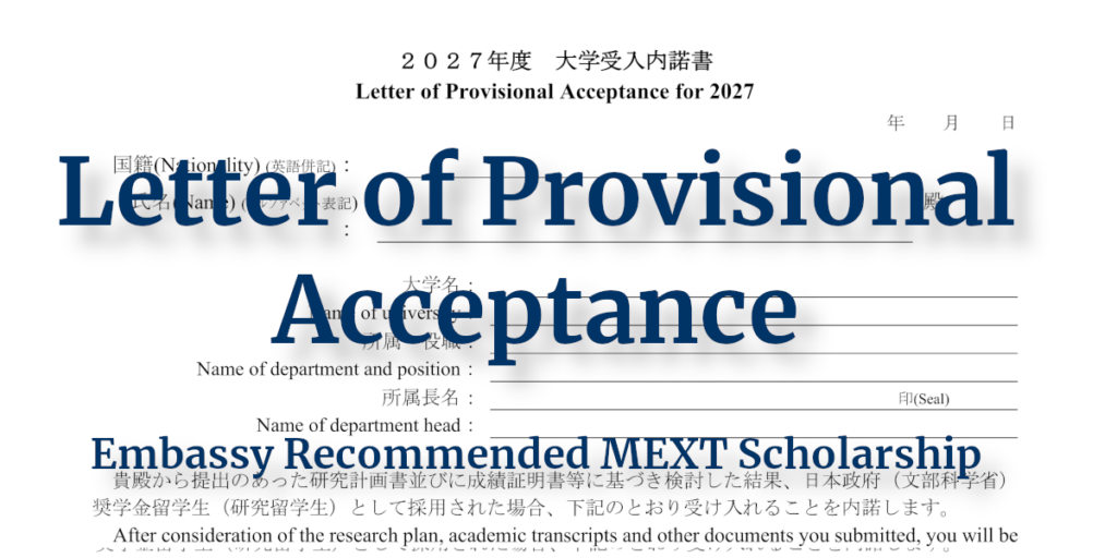 Only applicants for the MEXT Scholarship for Research Students (Graduate Students) are required to obtain Letters of Provisional Acceptance.